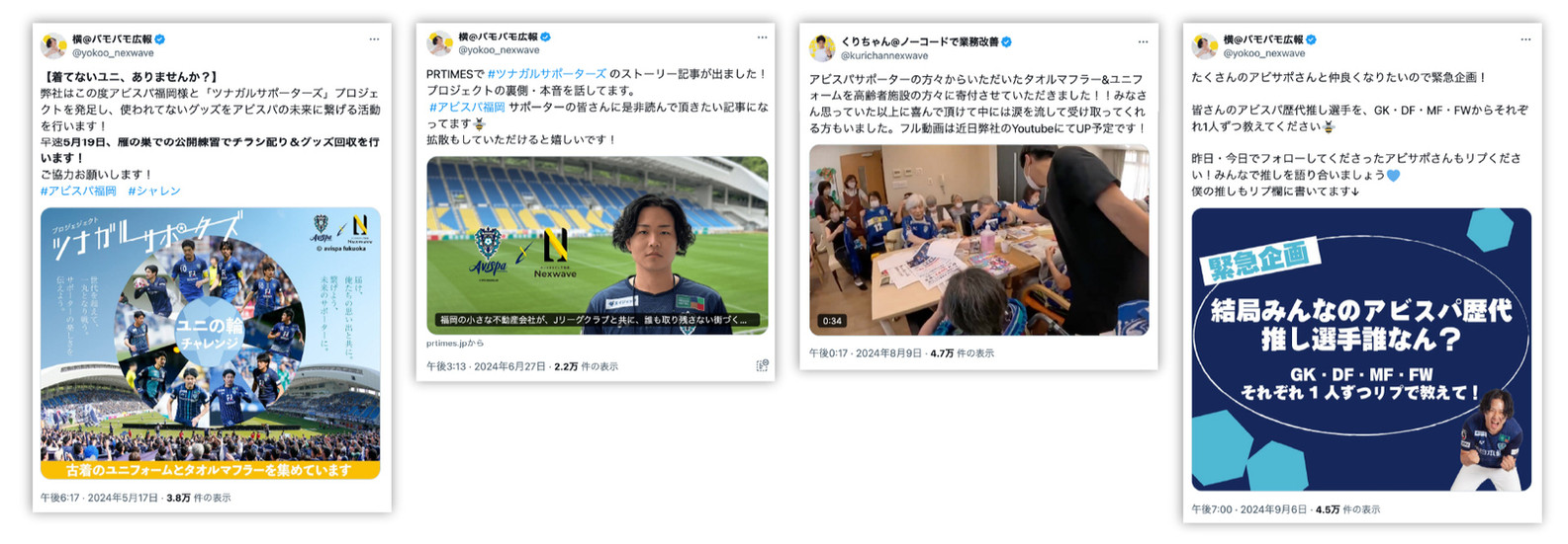 SNS運用は、プロジェクトの認知拡大に寄与するとともに、ファンコミュニティとのつながりを深める重要な要素となりました。特にアビスパサポーターとの交流強化が、プロジェクト成功の一因となっています。